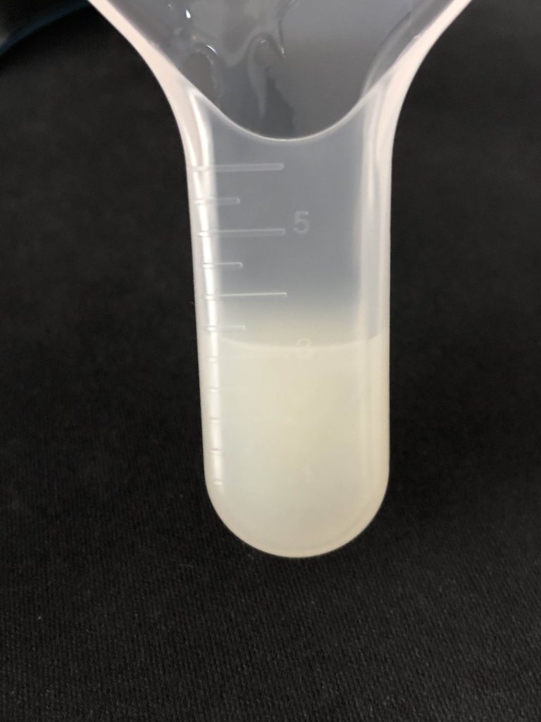 この計量カップ、傾けるとそのまま「精液量」を計ることが出来ます。